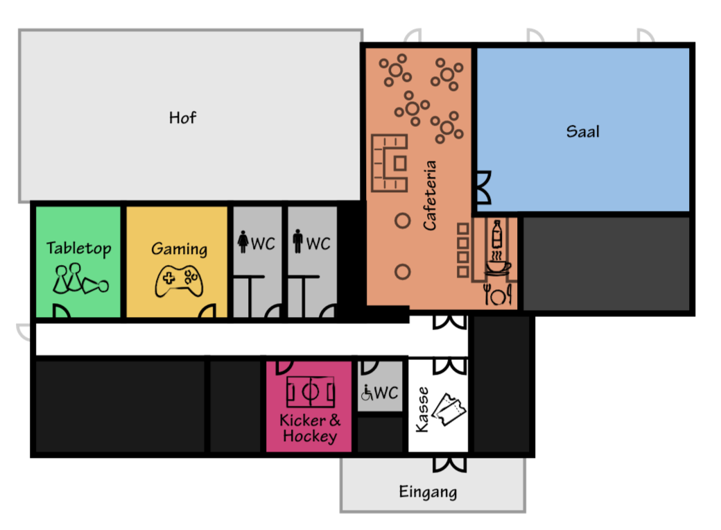Da das Gebäude ein Neubau ist, findet ihr hier eine Übersicht über unsere Location und unsere Angebote.